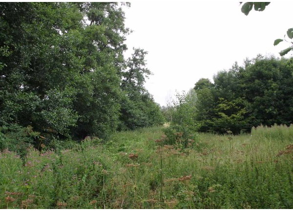 Former grazing meadows alongside the Stebbing Brook that have been planted up with native trees – oak, hornbeam and field maple up on the slopes; ash, alder and willow in the damper area; hazel and dogwood alongside the paths. Marshy areas and clearings beside the brook have been left open.