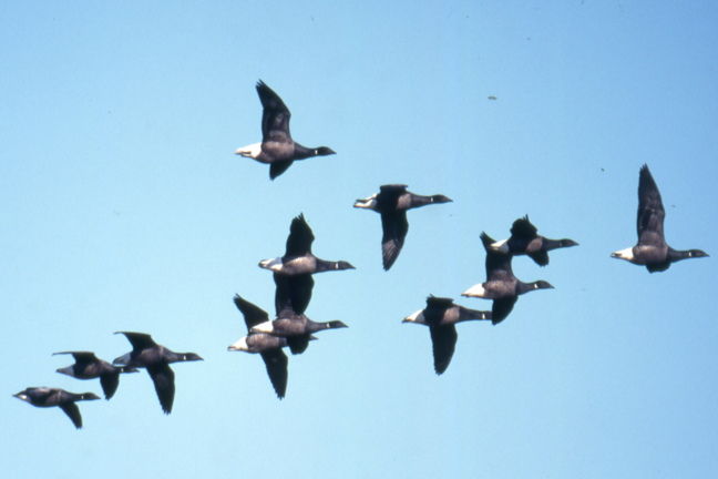 Small very dark goose of estuarine habitat, once endangered but increasing as a result of conservation action